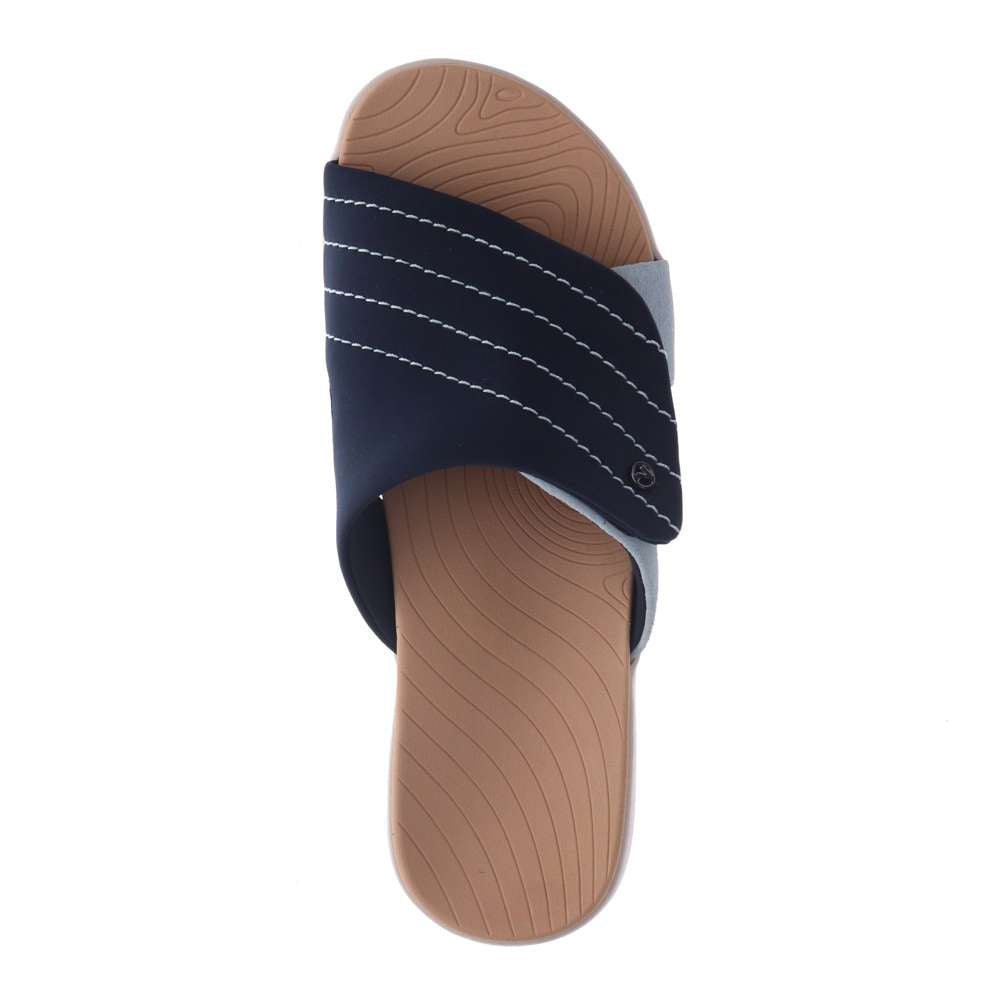 Ubud is a slide designed for your casual lifestyle. Great around the pool, at a BBQ or resort shopping. Great to pack in the bag and take on a cruise. Includes a single adjustable strap and with a soft and stretchy comfortable neoprene upper mixed with a luxe leather trim. Includes our famous comfort contoured arch support providing support and extreme comfort. You will love the comfort and the way you look and feel while on your feet all day.
