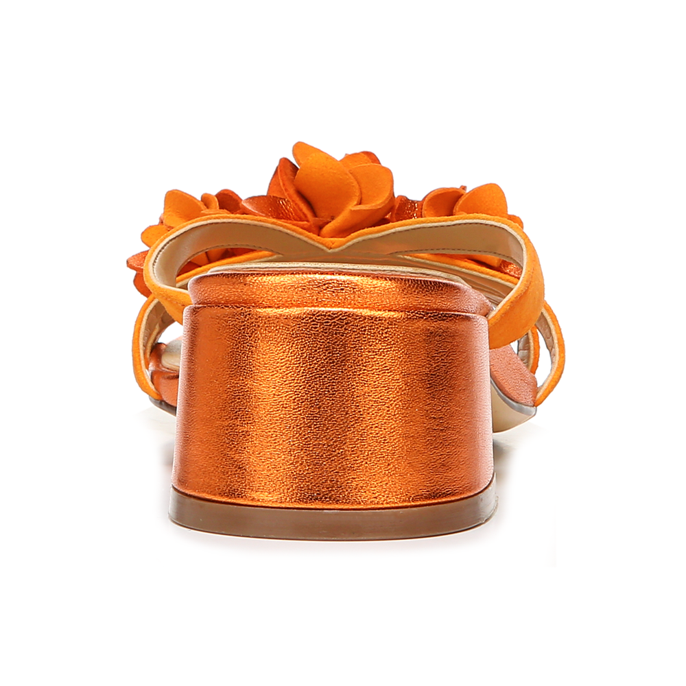 • Suede/manmade, suede/metallic leather, metallic leather or leather/manmade upper with an open toe.