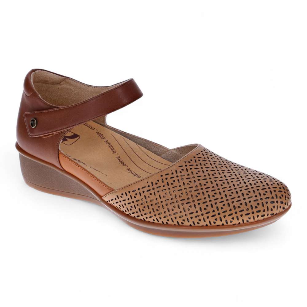 Delicate perforations adorn these stylish mary jane shoes, ensuring a soft, flexible fit. A tapered wedge adds just enough height, bridging the gap between work and weekend-wear. Like its namesake city, Osaka brings together modern styling while paying homage to a traditional silhouette. These orthopedic shoes for women feature a removable insoles which allows for the insertion of custom orthotics.