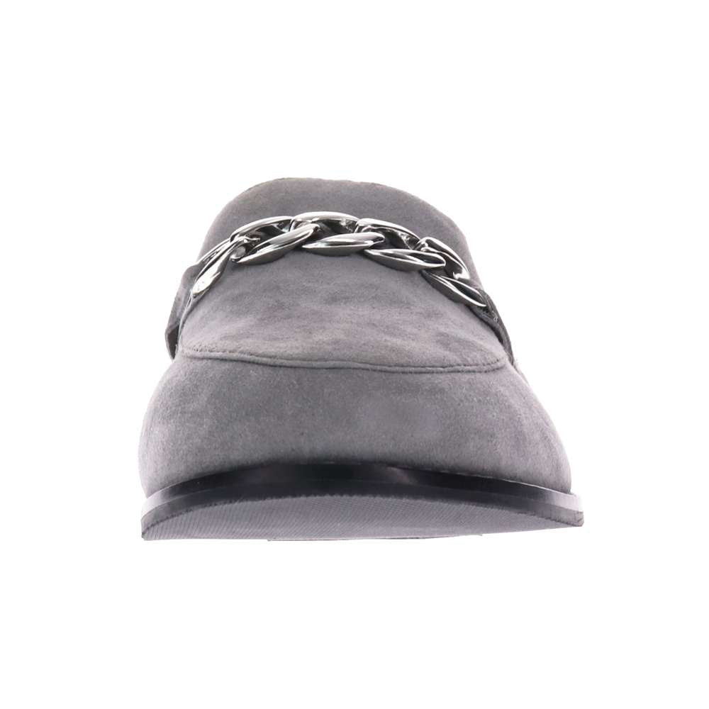 Classic dress slip on mule featuring a stylish metallic trim overlay.