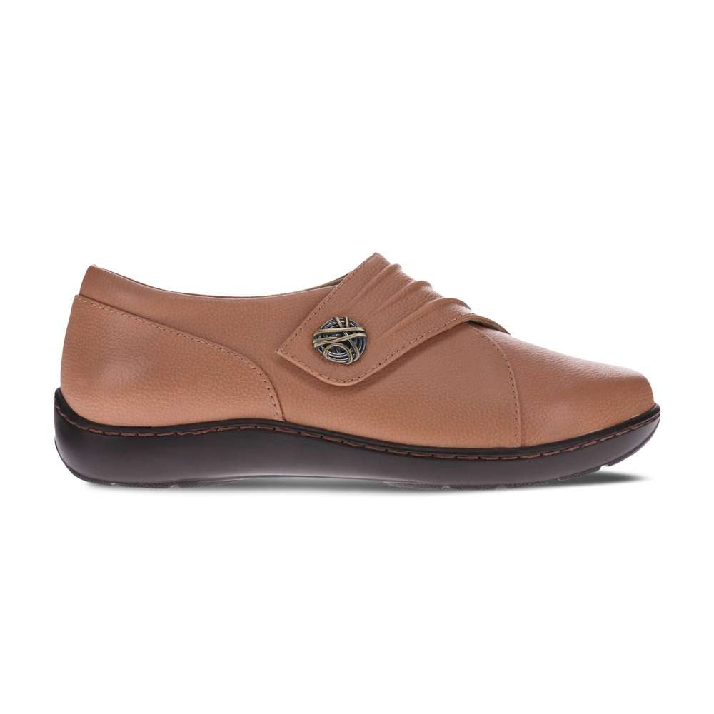 This stylish velcro adjustable loafer is another favourite. It offers a large pleated strap with a beautiful embellishment, for easy of entry.